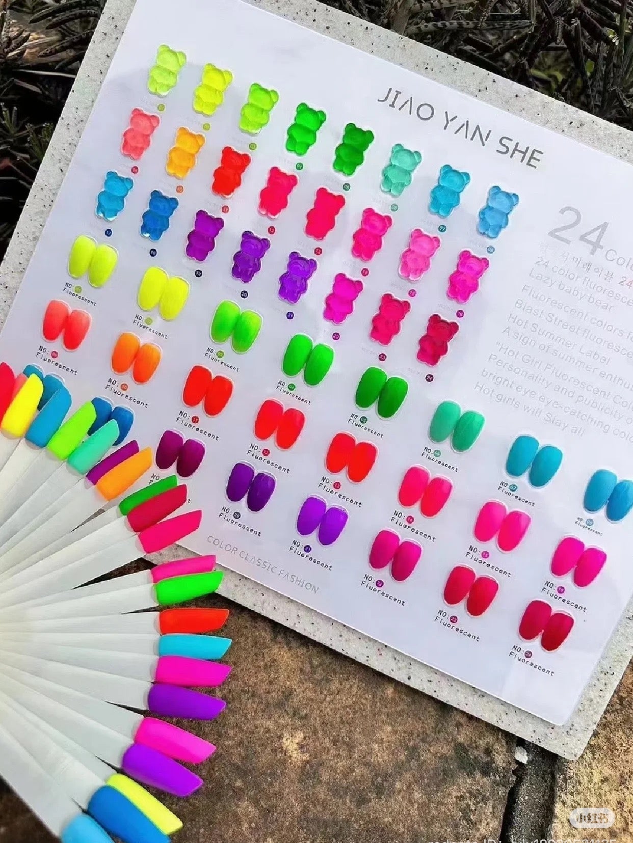 Experience the excitement of bold, glowing colors with the JIAOYANSHE 24 Colors Multicolour Fluorescence Style Korean Nail Polish. Inspired by the latest Korean nail trends, this collection features 24 eye-catching fluorescent shades that shine brilliantly under UV or black light โ perfect for making your nails the center of attention day or night.